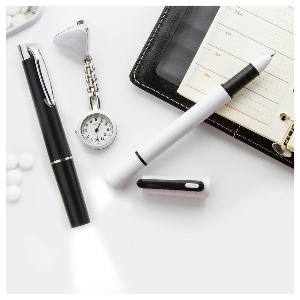 Nurse clock with metal chain.