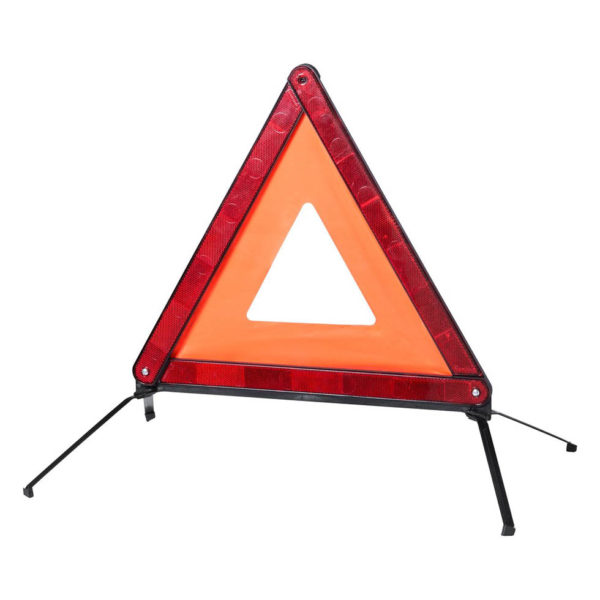 Folding emergency warning triangle with plastic case. Complies with European standard ECE-R27.