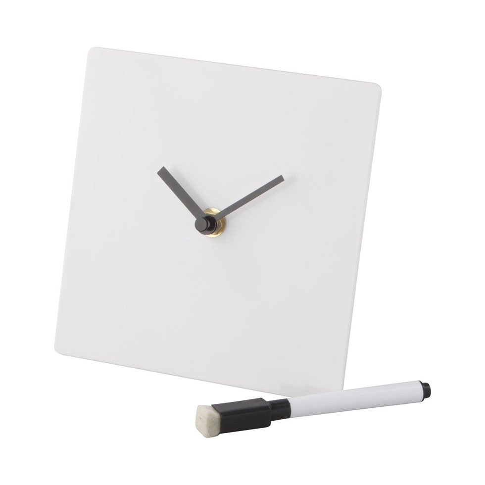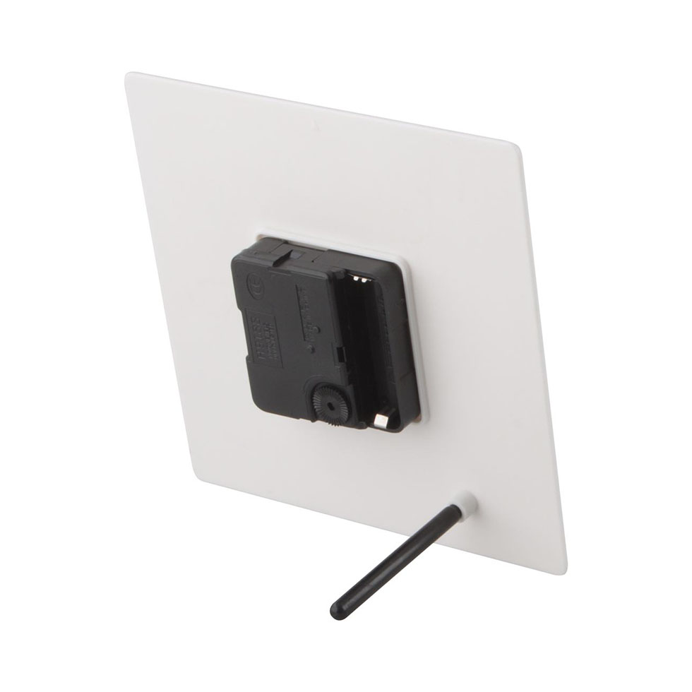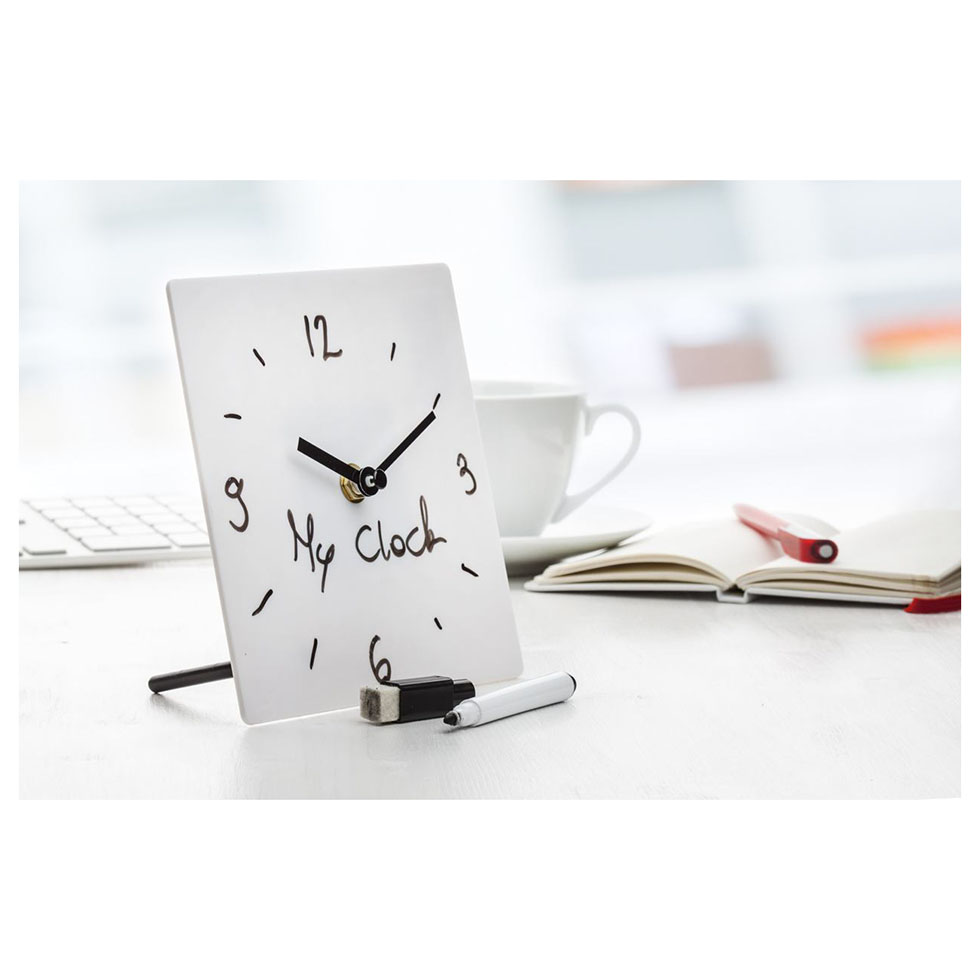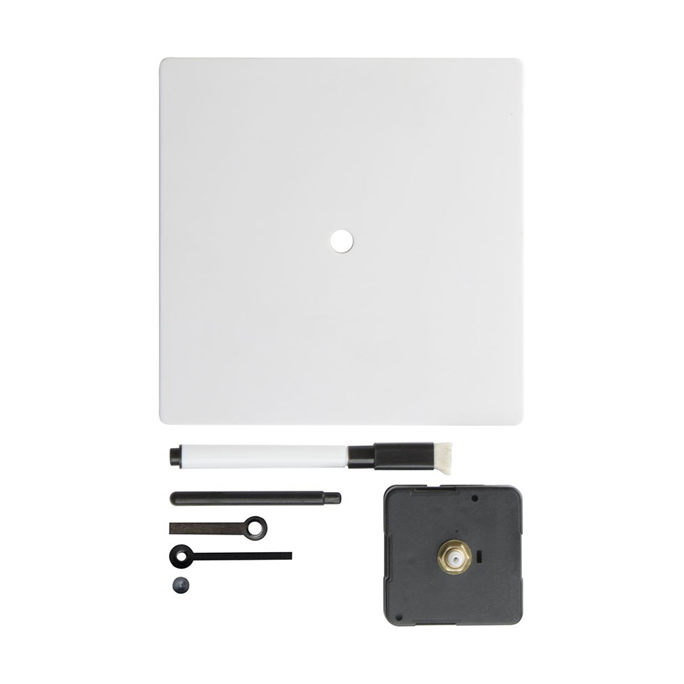 Do It Yourself, plastic table clock with marker. Operates with 1 AA battery. Delivered disassembled in paper box, without battery.