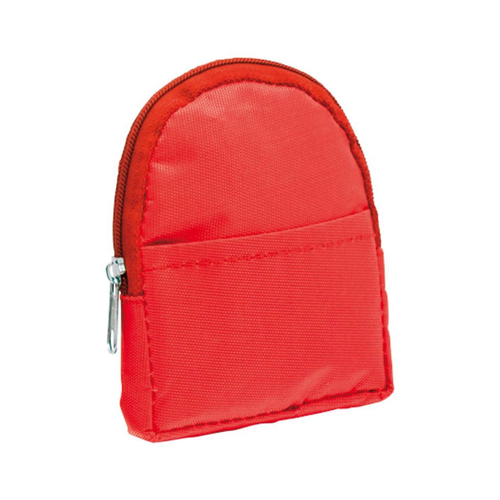 420D polyester, backpack shaped wallet with keyring.