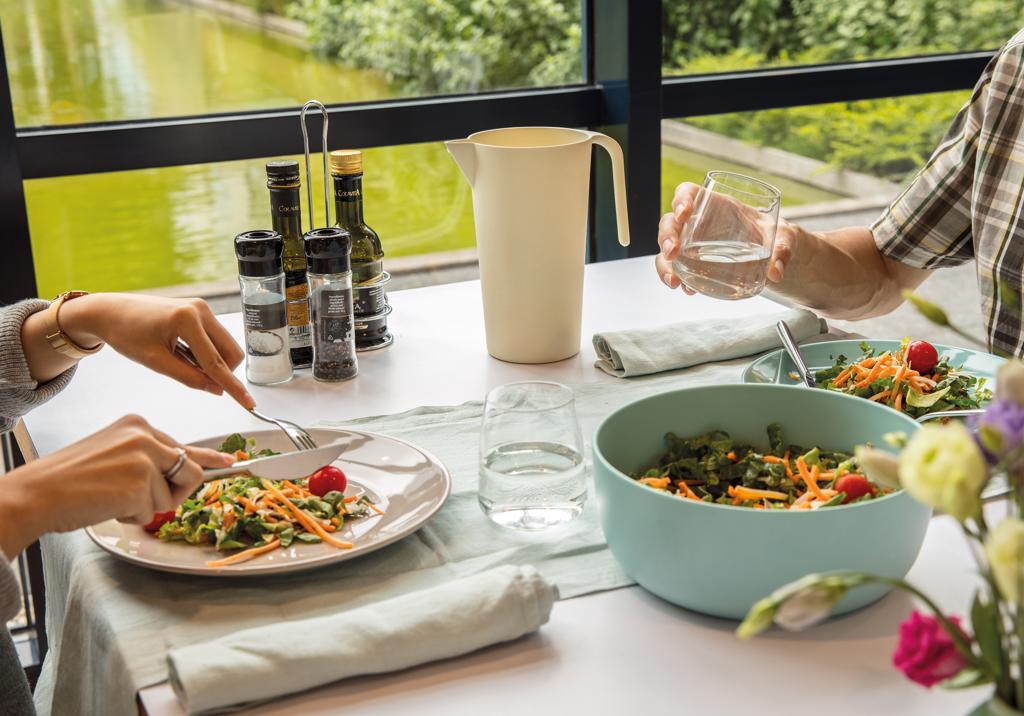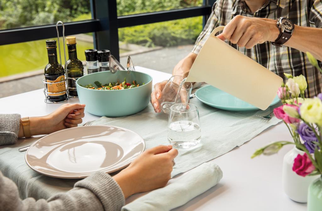Carafe made from naturally grown organic bamboo fibre. Reusable and highly durable. Content: 1.7L.