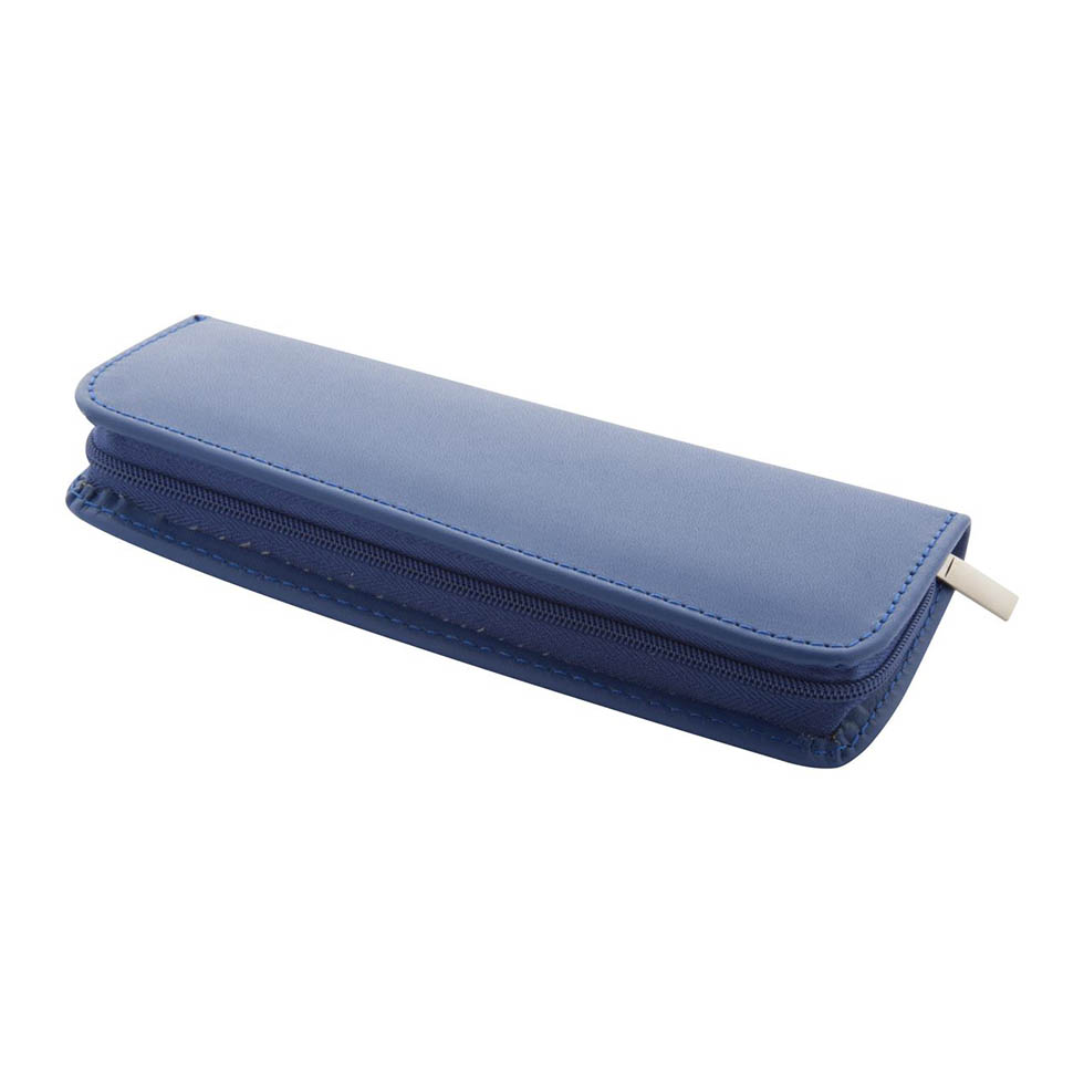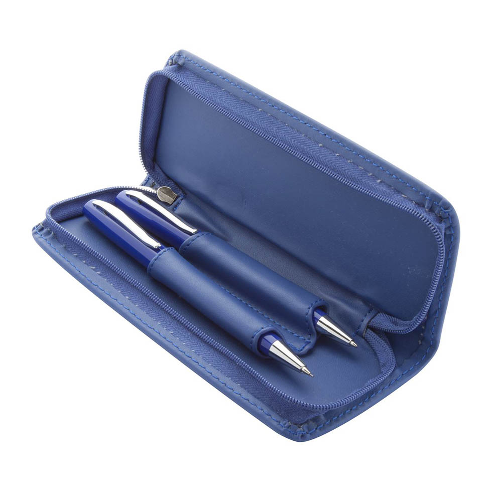 Metal ballpoint pen and mechanical pencil in PU leather case. With blue refill and 0.7 mm leads.