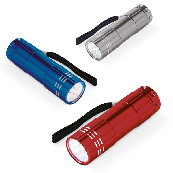 Flashlight. Aluminium. 9-LED. 3 AAA batteries not included.