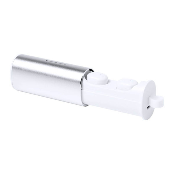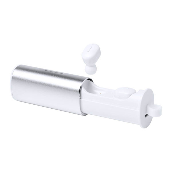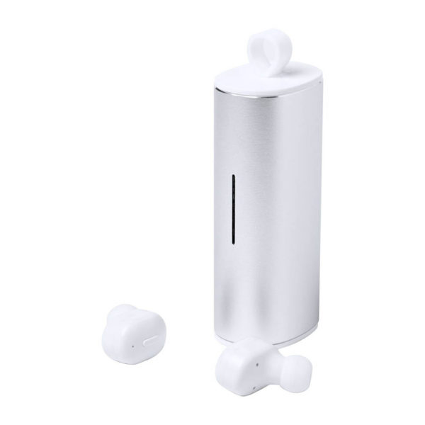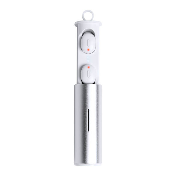 Bluetooth wireless earphones in aluminium charging case with hands-free call function. USB rechargeable, charger cable inculded. In gift box.