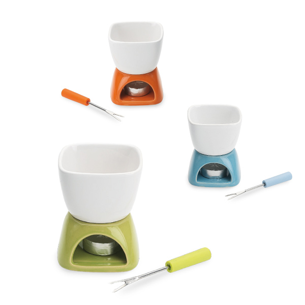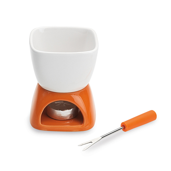 Fondue set. Ceramic. Includes 1 fork and a candle. In box. 75 x 75 x 98 mm | Box: 87 x 82 x 110 mm