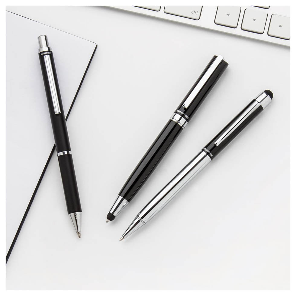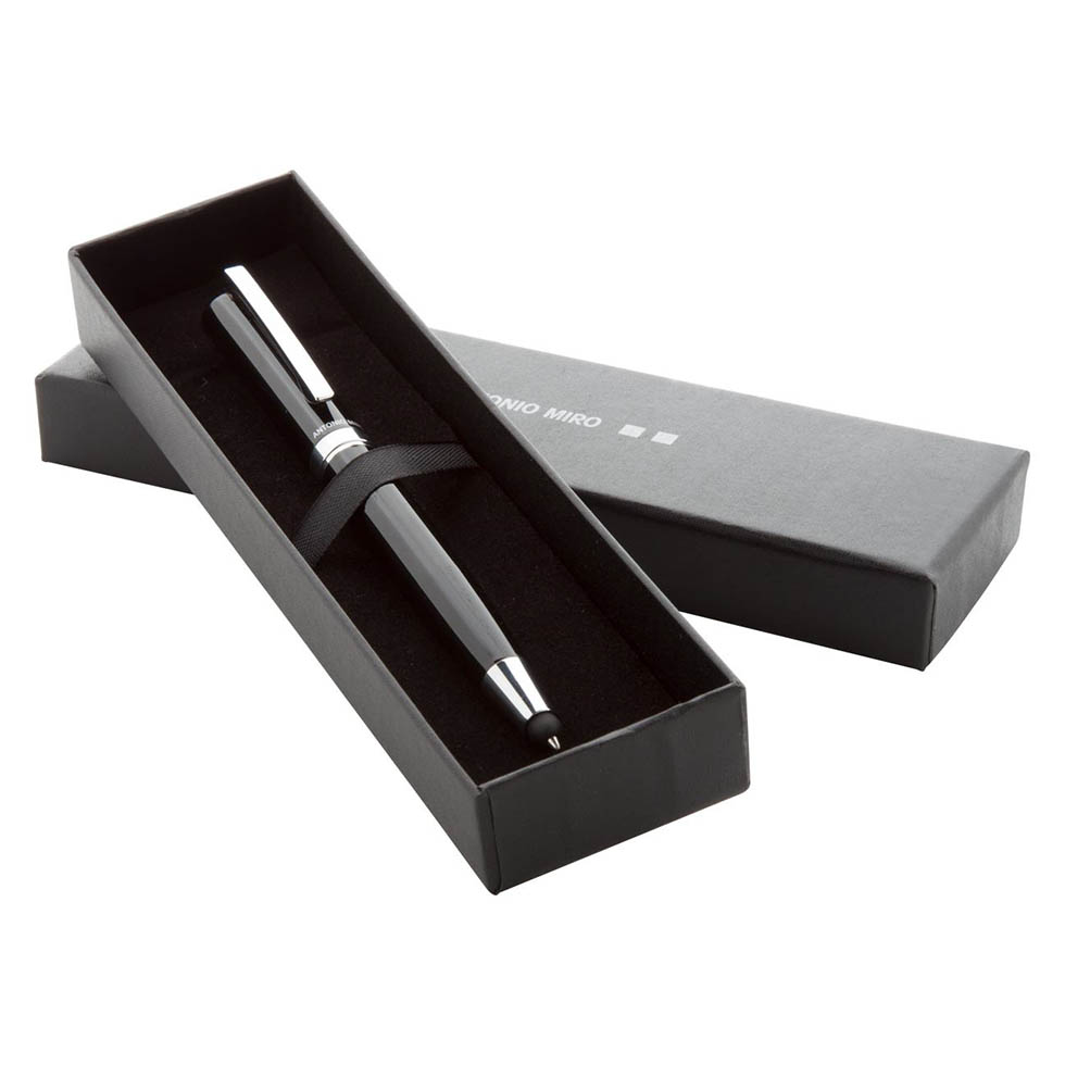 Metal ballpoint and touch screen pen in gift box. Delivered with blue refill. Antonio Miro brand product.