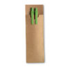Paper barrel pen set which includes a push type ball pen and mechanical pencil presented in a recycled paper pouch. Blue ink.
