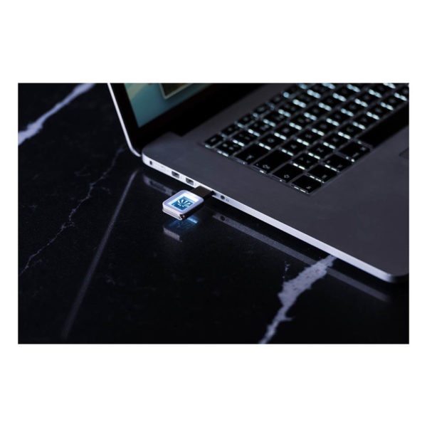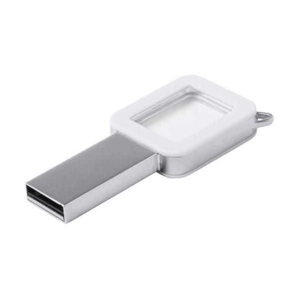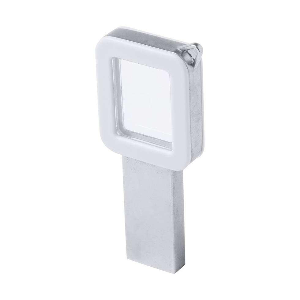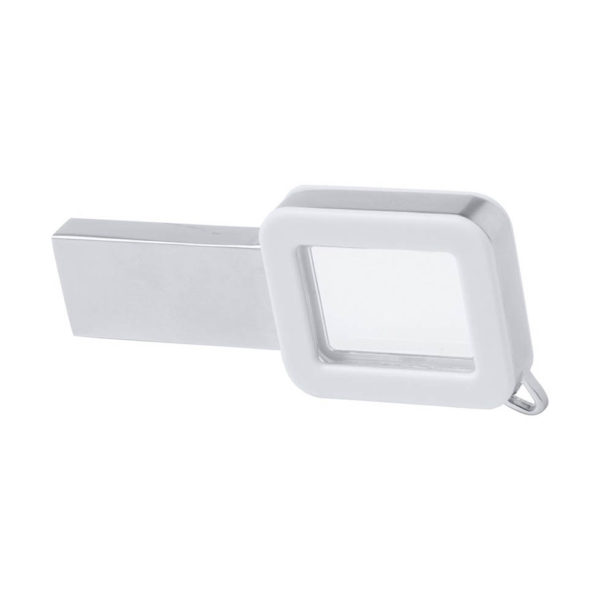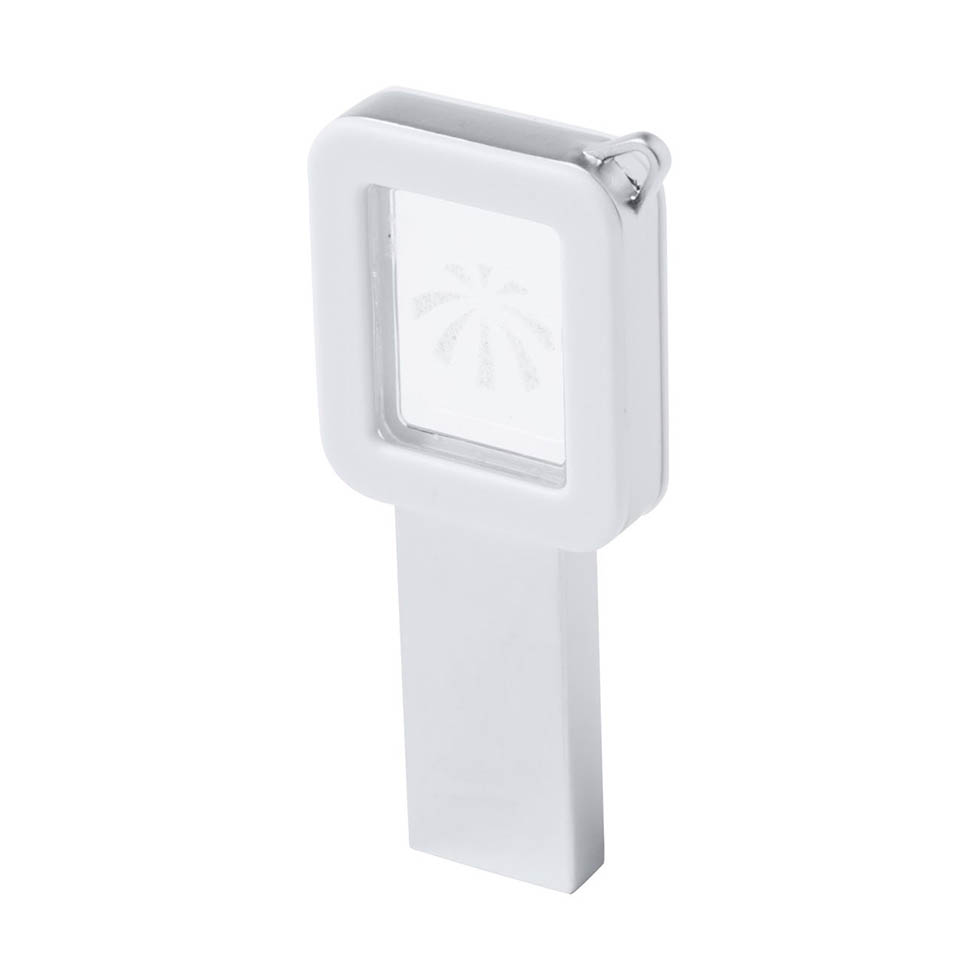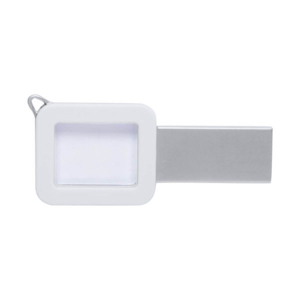 16GB USB flash drive. Unique metal body with acrylic center with white light inside. In PVC case.