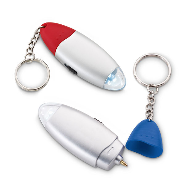 Keyring. With LED and ball pen. Includes 3 LR41 batteries.
