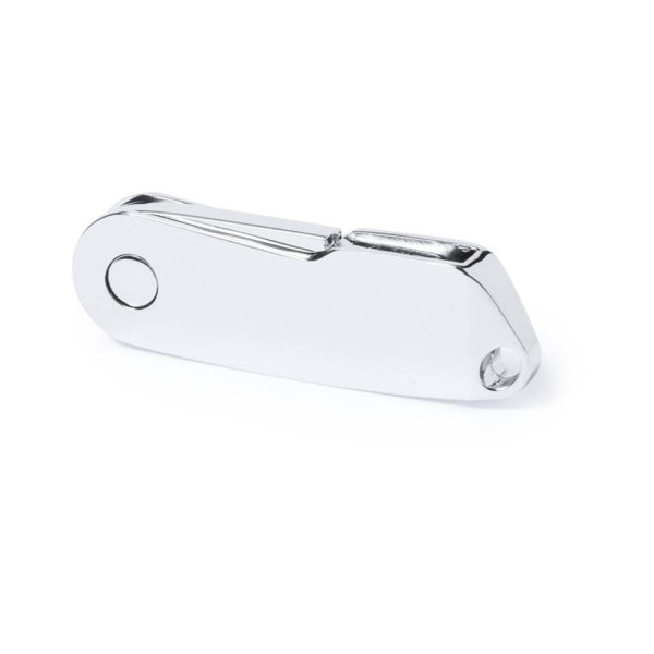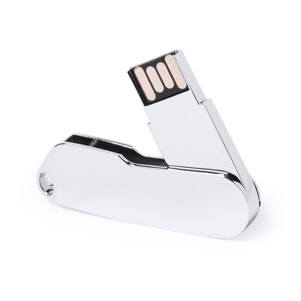 Metal USB flash drive with 8 GB memory in paper gift box.