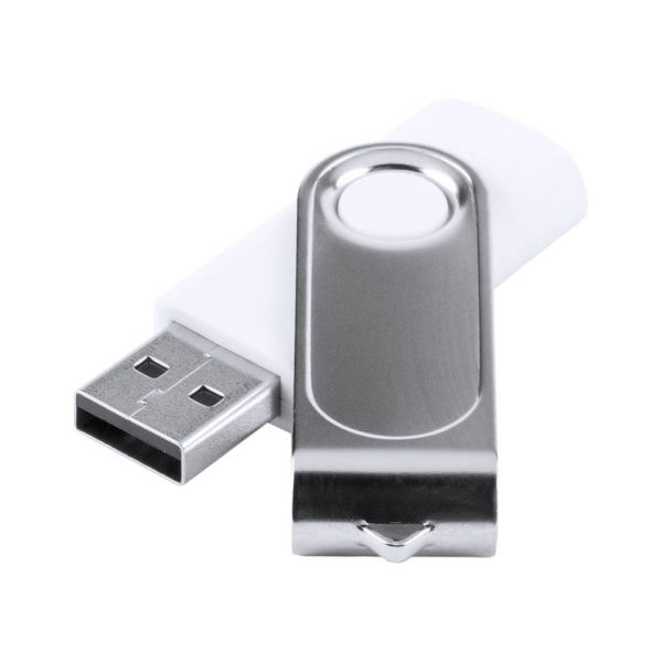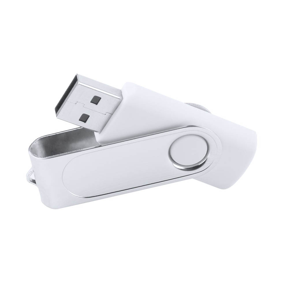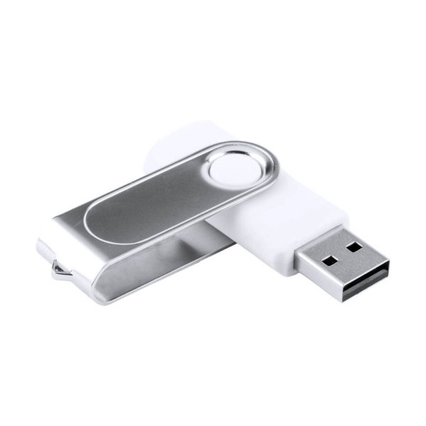 Twist USB flash drive with white body and metal clip. In individual case. Capacity 16GB.