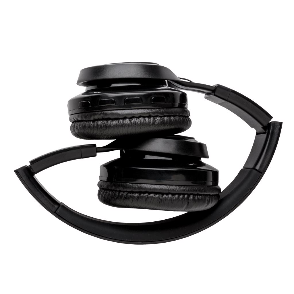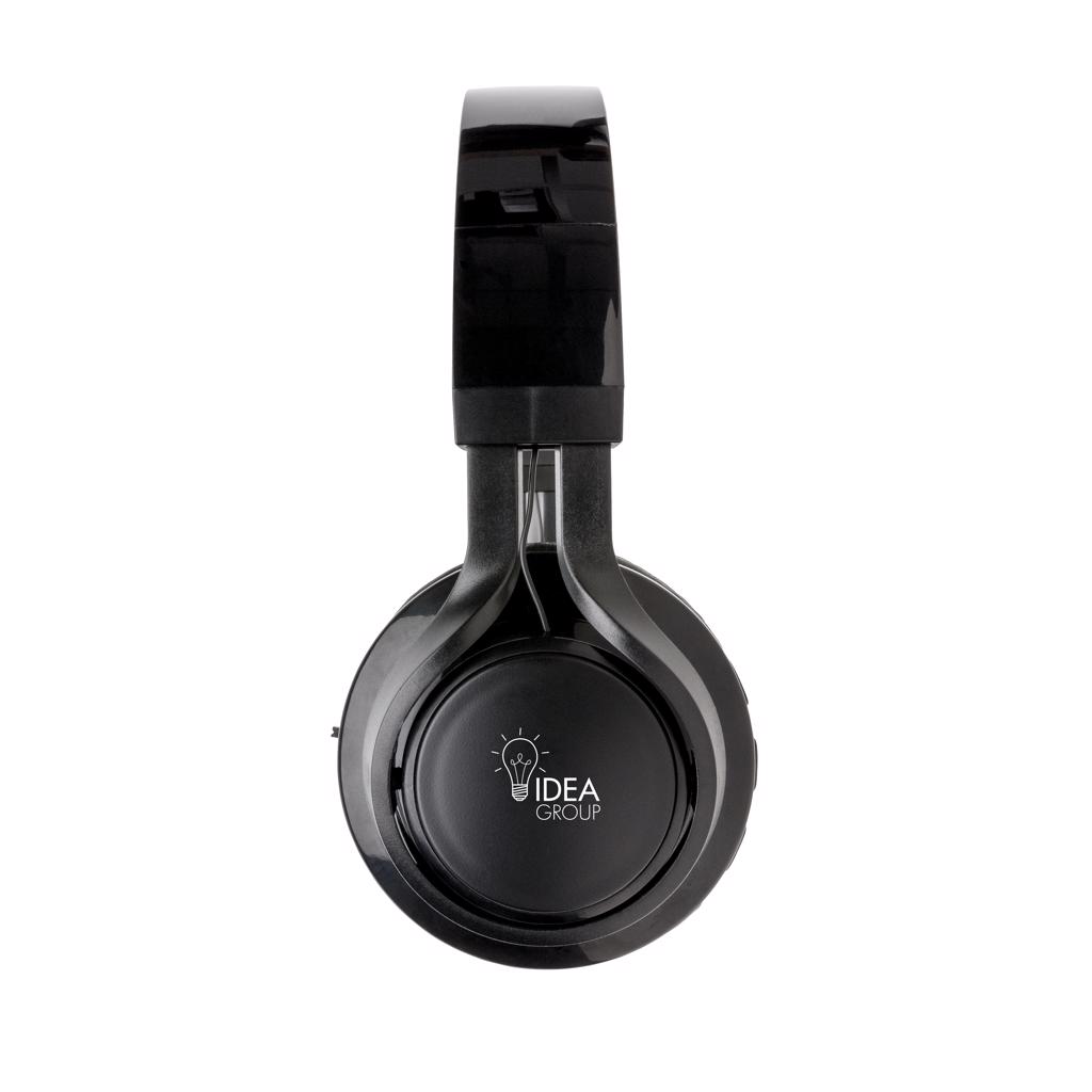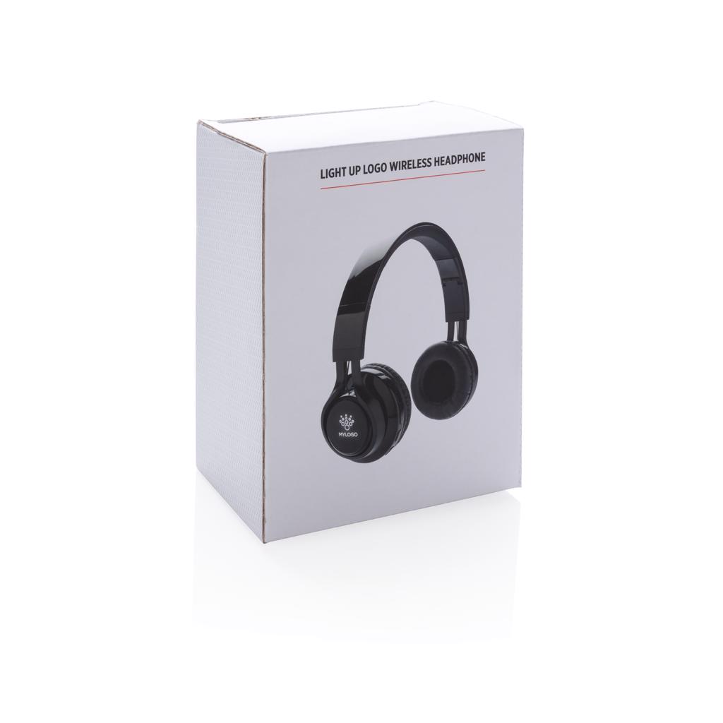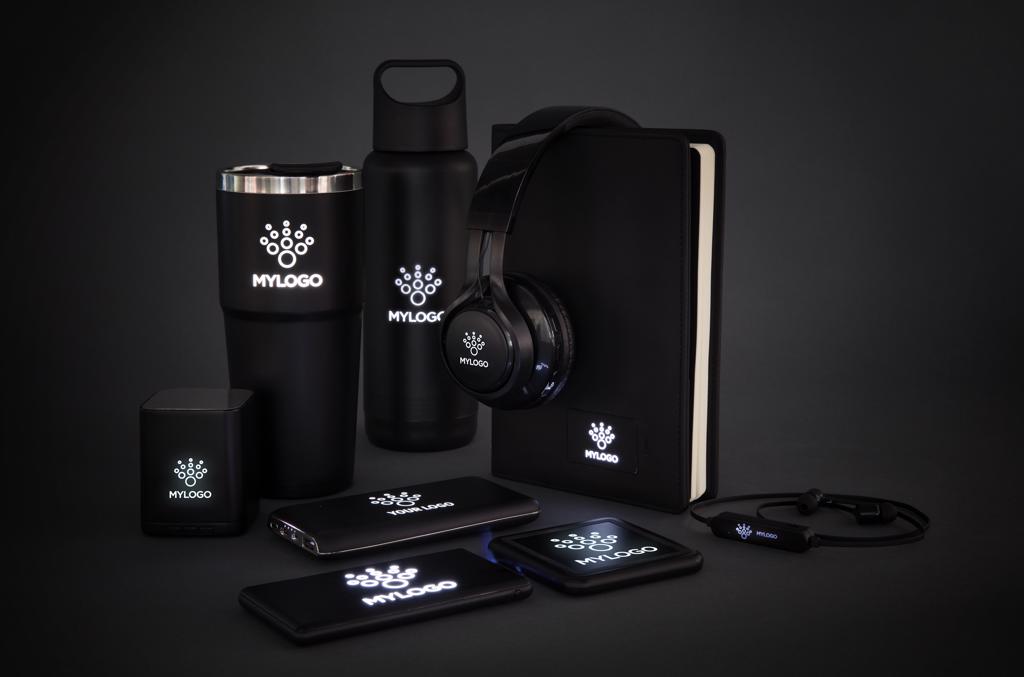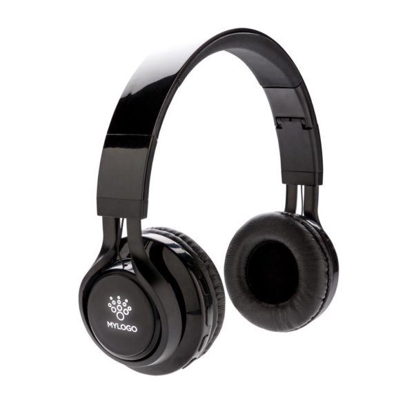 Wireless headphones that can be customised with your logo on the ABS surface. The logo will light up when using the item, creating maximum exposure of your brand. The headphones use BT 4.2 for smooth connection up to 10 metres. The built-in 400 mAh battery allows you to play music for up to 4 hours on 1 charge and re-charge is done in 2 hours. With microphone/pick up function to answer calls.