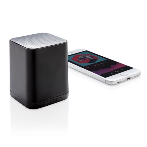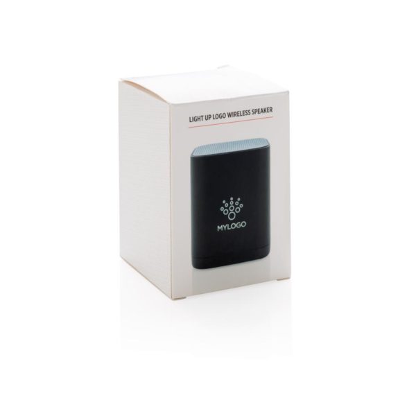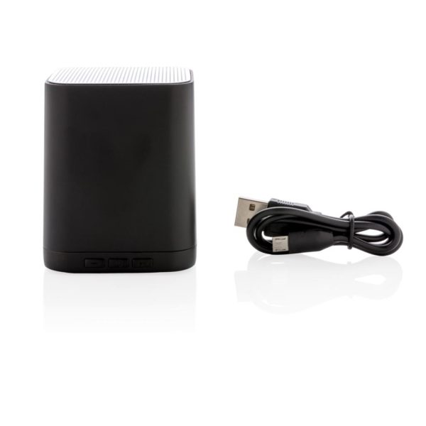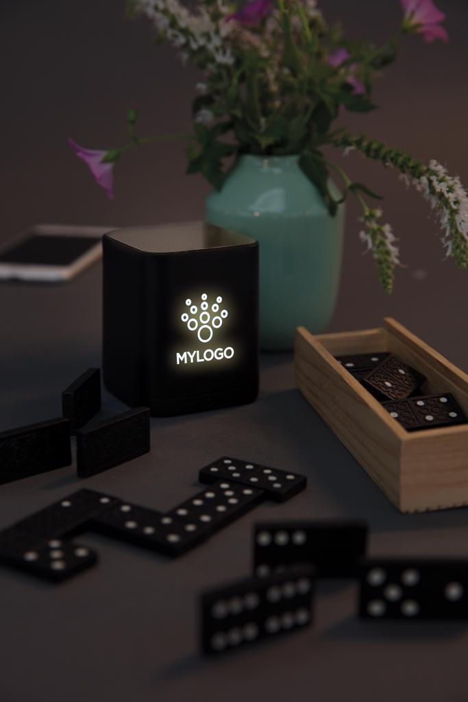 Wireless 3W speaker that can be customised with your logo on the ABS surface. The logo will light up for optimal exposure of your brand. The speaker uses BT 4.2 for smooth connection up to 10 metres. The built-in 400 mAh battery allows you to play music for up to 4 hours on 1 charge and re-charge is done in 1 hour.