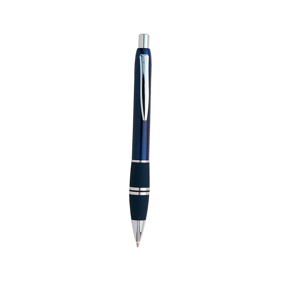 Plastic ballpoint pen with rubber grip.