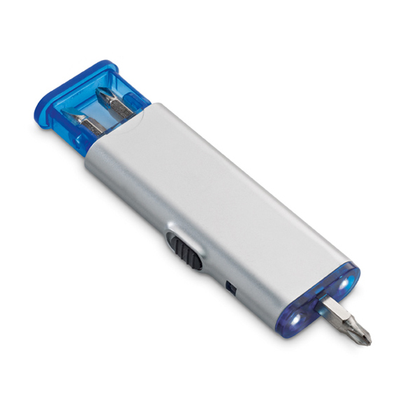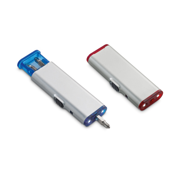 Mini tool set. 2-LED flashlight. 6 pieces. Includes 2 CR1220 batteries.