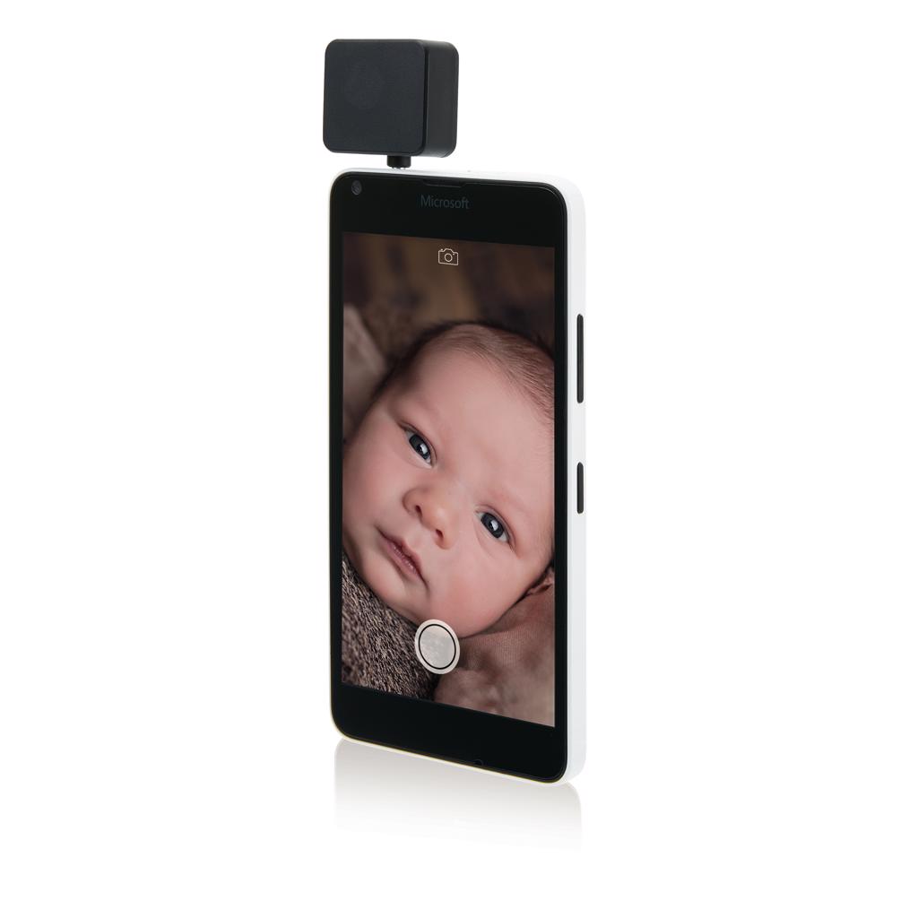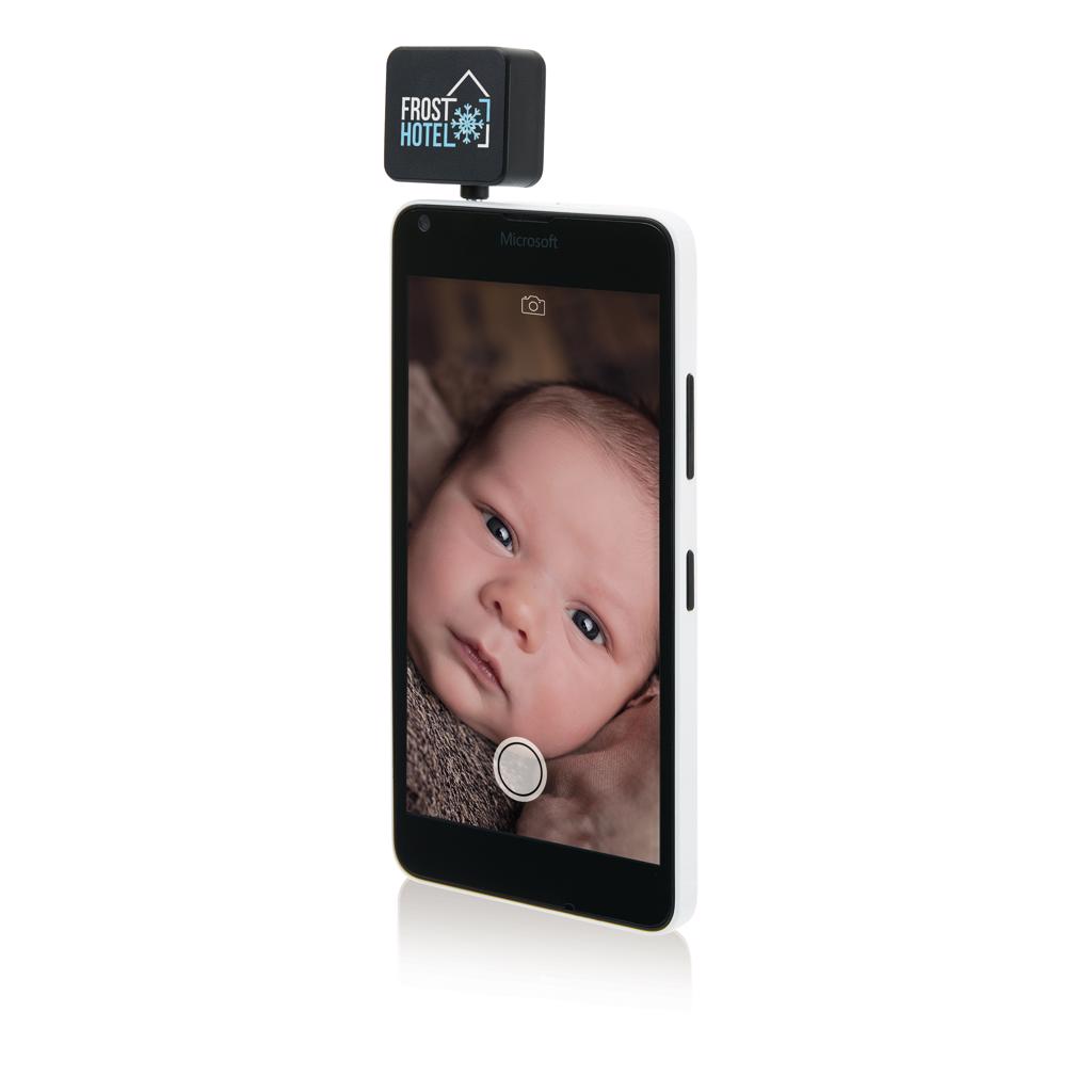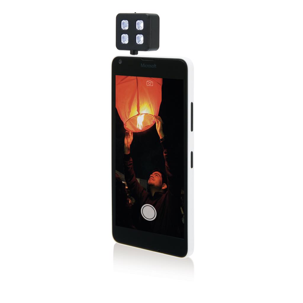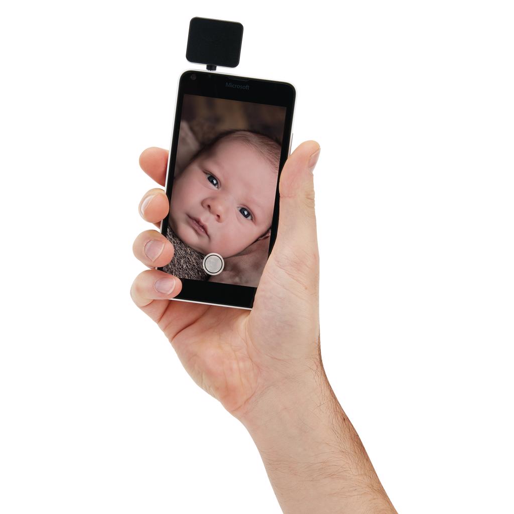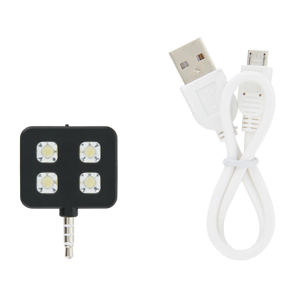 LED flashlight that can be inserted in your mobile device to significantly improve the quality of your pictures that are taken in darker environments. Easy to use and is compatible with both IOS as Android phones. The battery is charged via USB and can take up to 300 pictures on one charge.