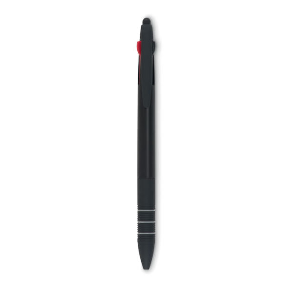 ABS pen with stylus and 3 ink colours: red, blue and black.