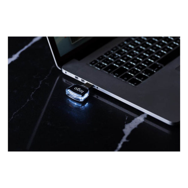 16GB, acrylic USB flash drive, especially designed for laser printing. Illuminates when connected. In individual case.