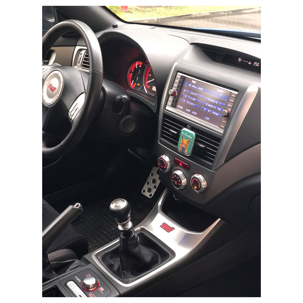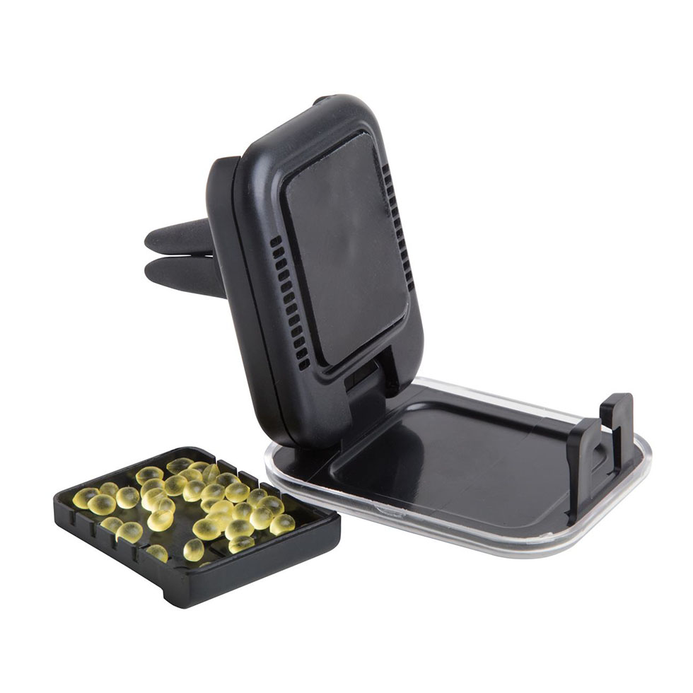 Car air freshener and mobile holder with air vent mounting. Custom graphic can be placed inside the housing. With lemon fragrance.