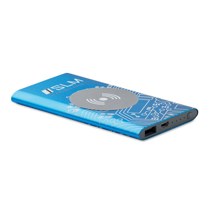 Wireless aluminium charging power bank with 4000 mAh capacity. Includes Type C connector. Output: DC5V/0.8A. Compatible latest androids, iPhone® 8, 8S and X and newer.