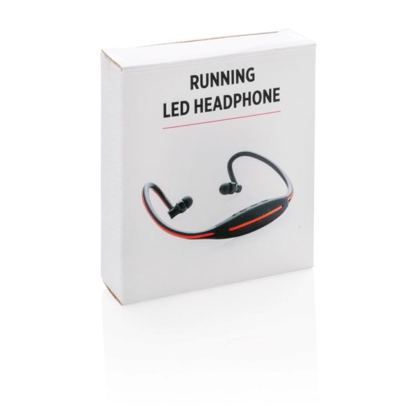 Wireless running headphones with integrated LED light for optimal safety. These sport headphones have an optimal weight distribution for a perfect and comfortable workout experience. The integrated red LED light allows you to work out safely in a dark environment and makes sure you are visible to other users. With 180 mAh built-in battery, it can be used up to 2-4 hours (depending on usage of LED). With state of the art wireless BT 4.2 connection up to 10 metres of operating distance. Includes string pouch to store and carry these earbuds to your workout.