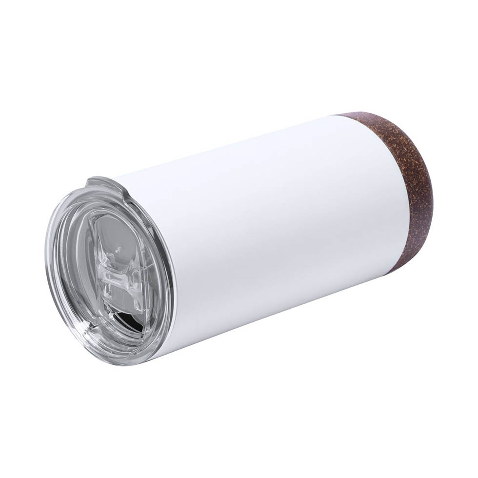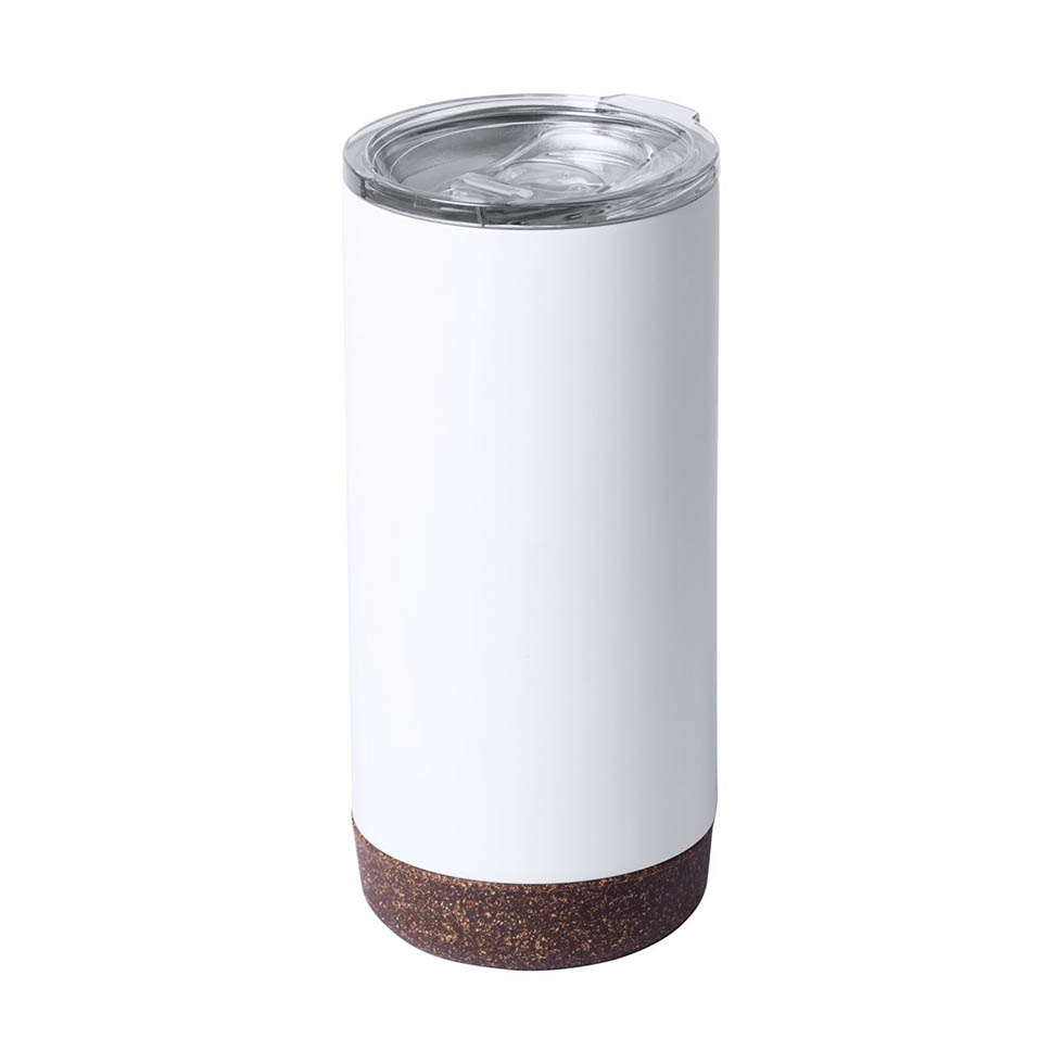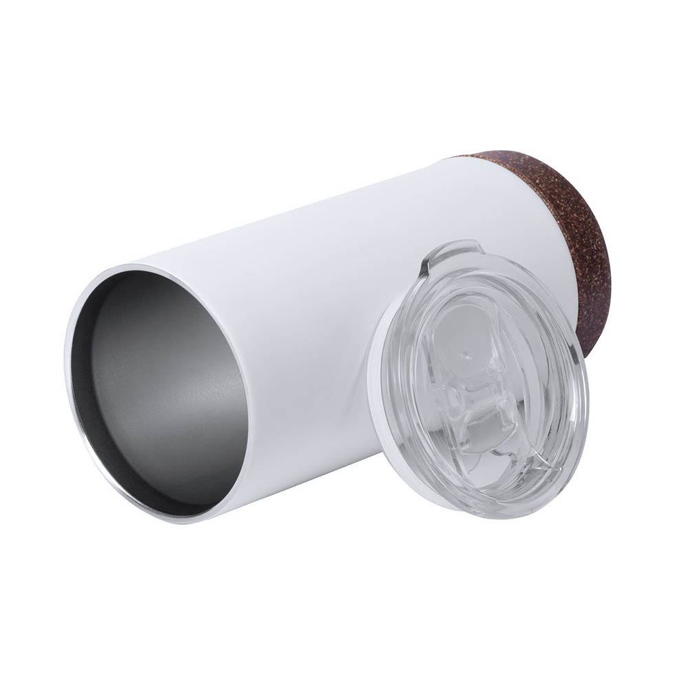 Stainless steel, double wall thermo mug with transparent drinking lid and cork base, 500 ml. In gift box.