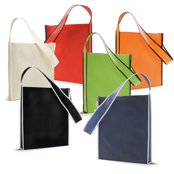 Shoulder bag. Non-woven: 80 g/m². 95 cm handle.
