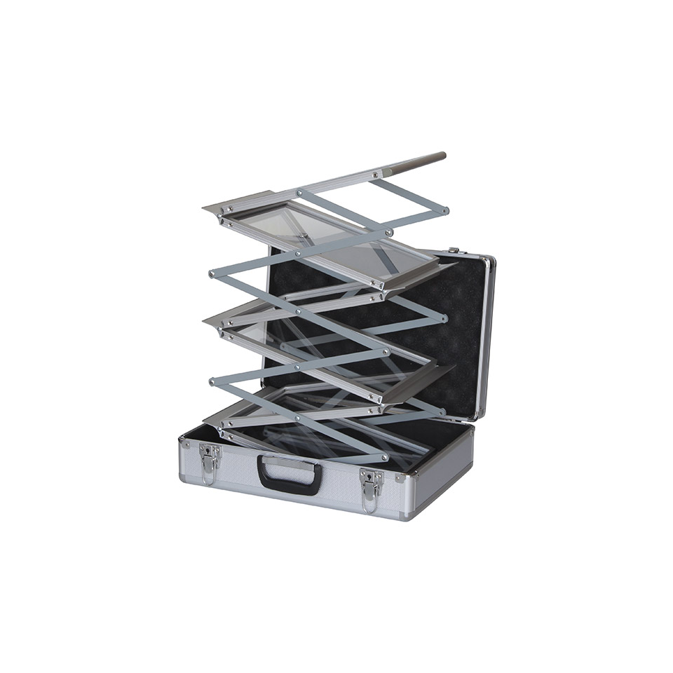 Sklopivi aluminijski stalak idealan je za distribuciju vaših prospekata i kataloga. Izrađen od laganog aluminija i prozirnog pleksiglasa. Uz stalak dolazi i transportni kofer.