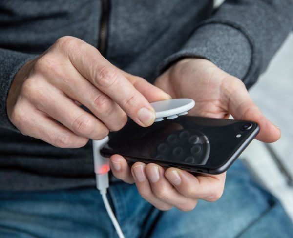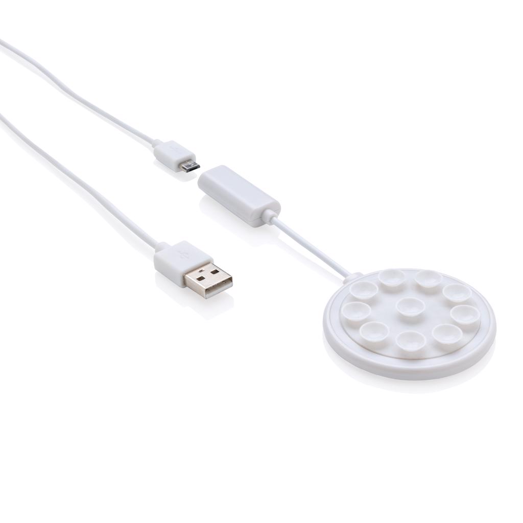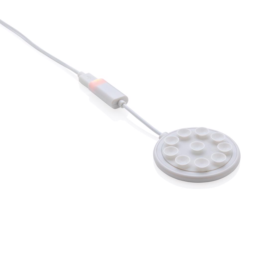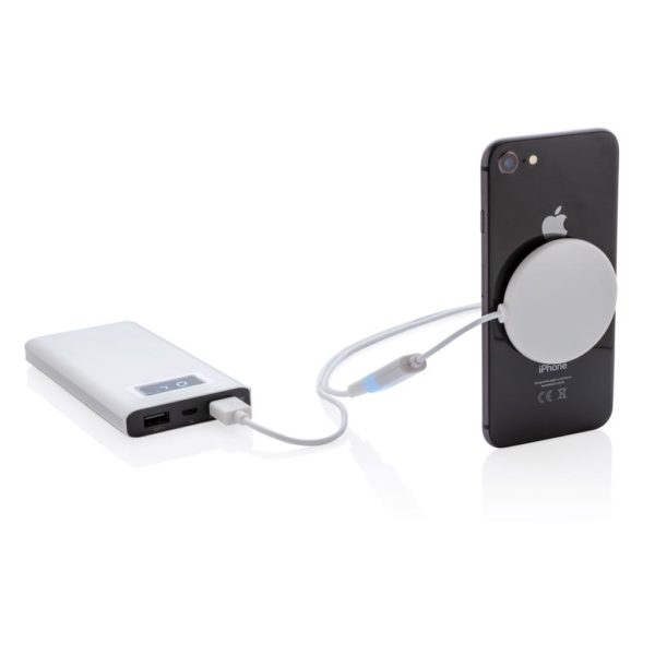 Never run out of power when binge-watching your favorite TV show or taking on your friends on the latest mobile games. This 5W wireless charger has cleverly designed secure suction pads to stick on the back of your mobile phone to provide new energy to your phone. The design allows you to hold your phone horizontally without the cable disturbing your grip. Use wherever you are: at home, on the plane train or backseat of the car. Including 120cm micro USB cable to connect it to any USB power source like a USB charger or powerbank. ABS material. Compatible with all QI enabled devices like Android latest generation, iPhone 8 and up. Input: 5V/1,5A. Wireless Output: 5V/1A, 5W.