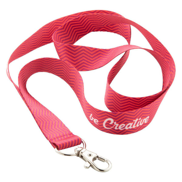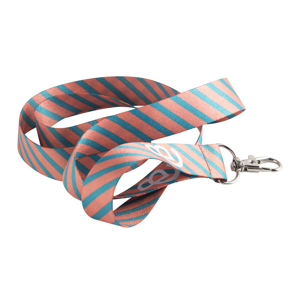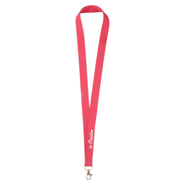 Custom made, polyester lanyard with metal carabiner. With sublimation printed graphics on both sides. MOQ: 100 pcs. The relative position of the graphics on the back side of the ribbon may differ from the front side!
