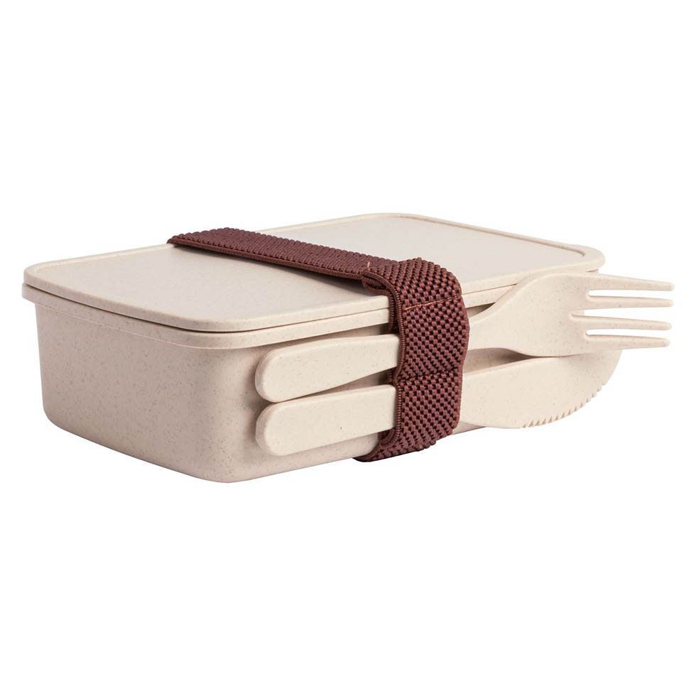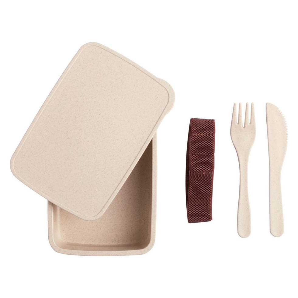 Bamboo fibre lunch box with cutlery set (knife and fork) and elastic strap, 700 ml.