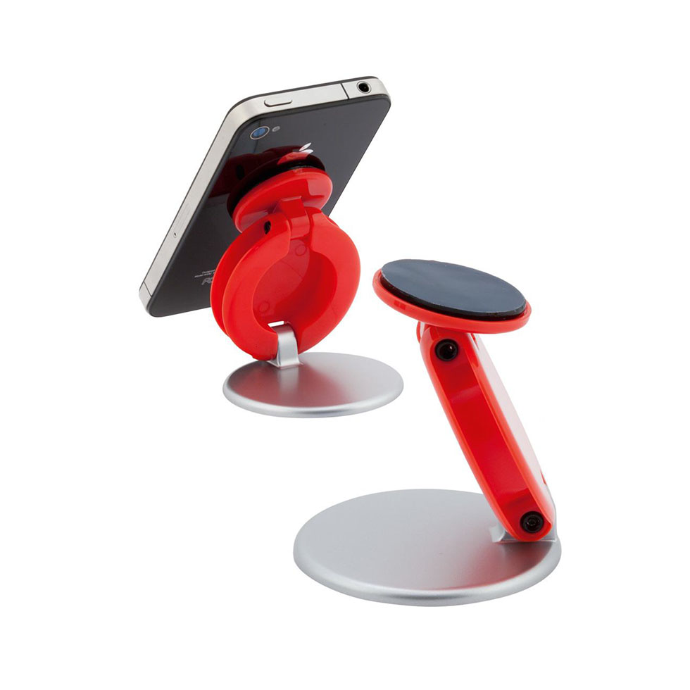 Adjustable desk mobile holder with sticky surface.