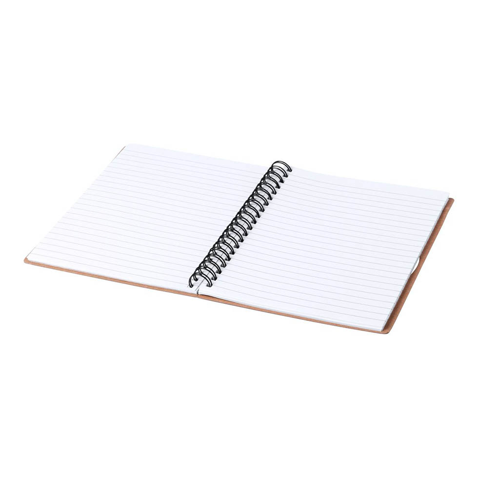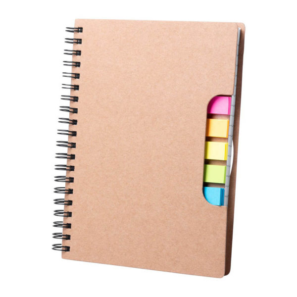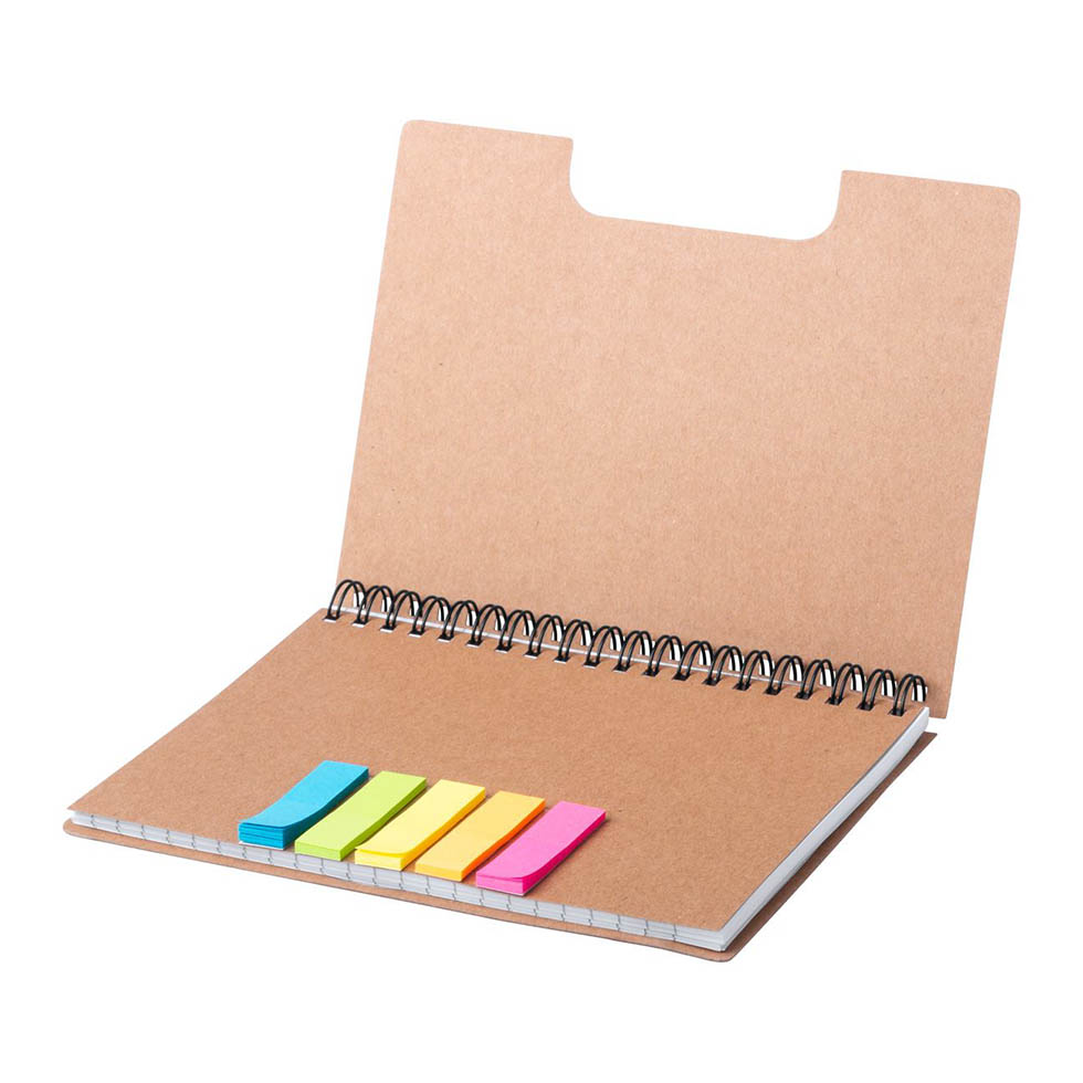 Recycled paper spiral notebook with 60 lined sheets and adhesive notes (5 × 25 pcs).