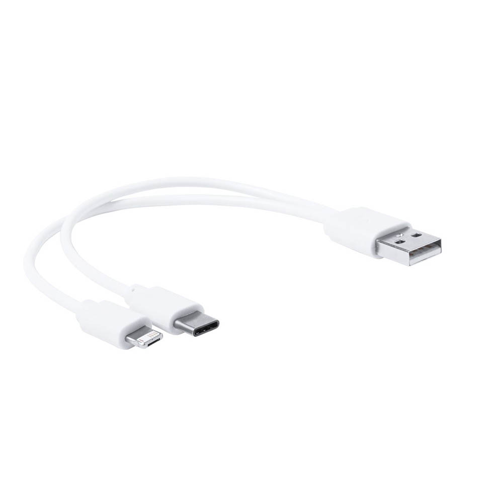 Dual USB charger cable with USB Type-C and micro USB connections.