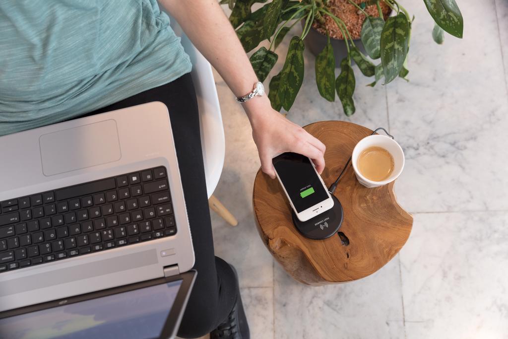 Charge your mobile devices without connecting a cable. Just place your mobile phone on the pad and wait for the charging notification to appear. The charging pad supports 10W charging to charge your phone twice as fast as most other wireless chargers in the market. With air holes in the bottom to keep the charger cool while charging and rubber strips to ensure stability. Wireless charging compatible with Android latest generations, iPhone 8 and up. Input: 5V/2A. Wireless Output: Output: 9V/1.1 10W.