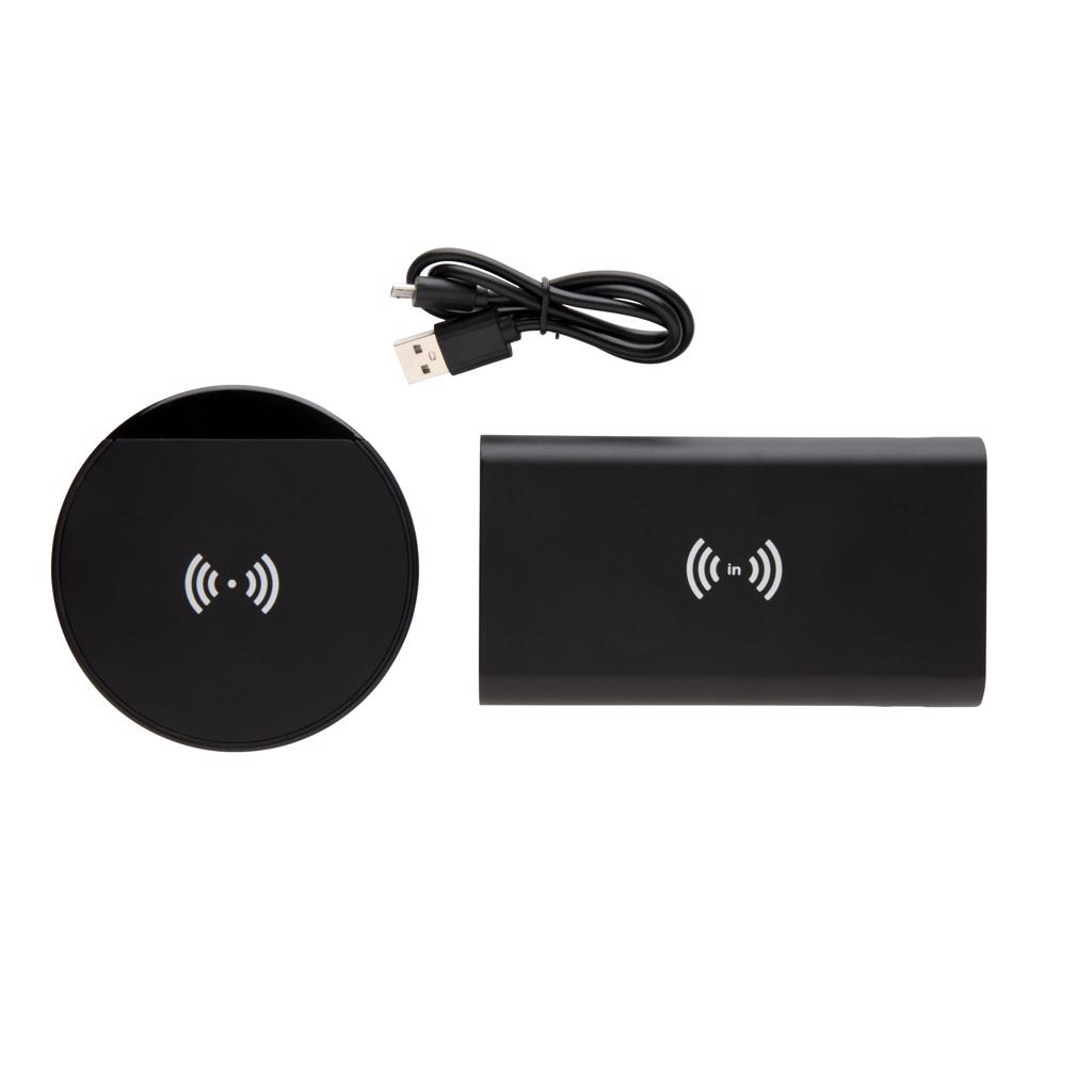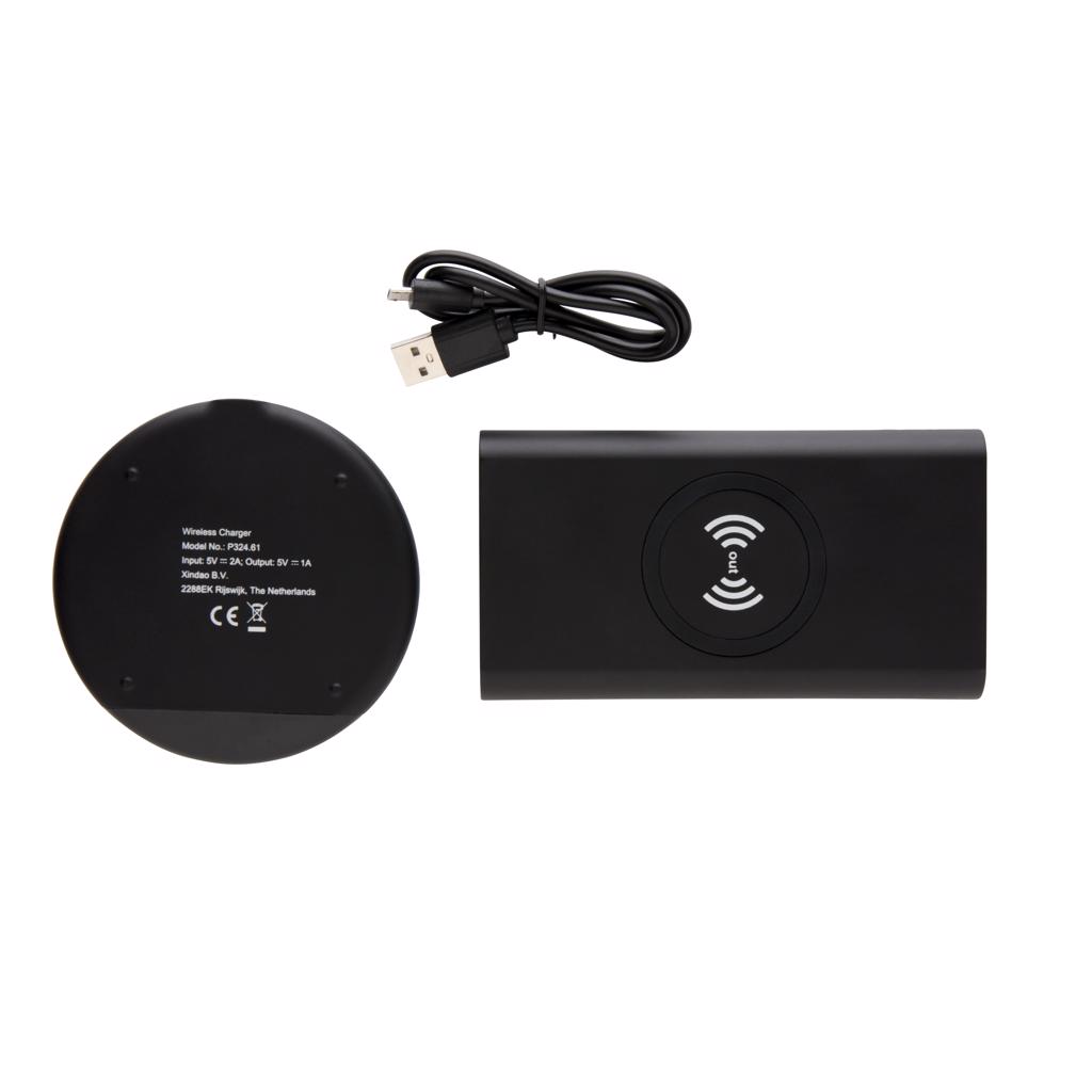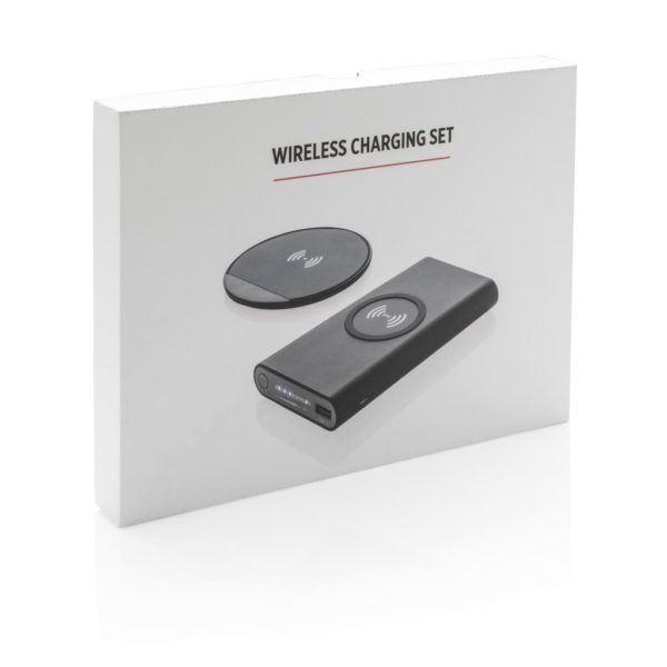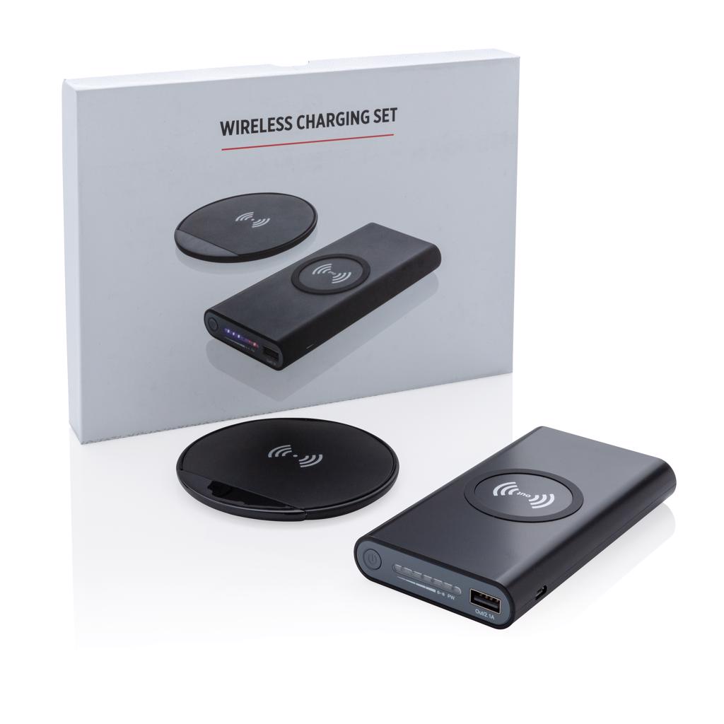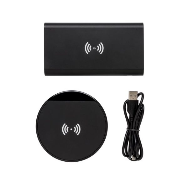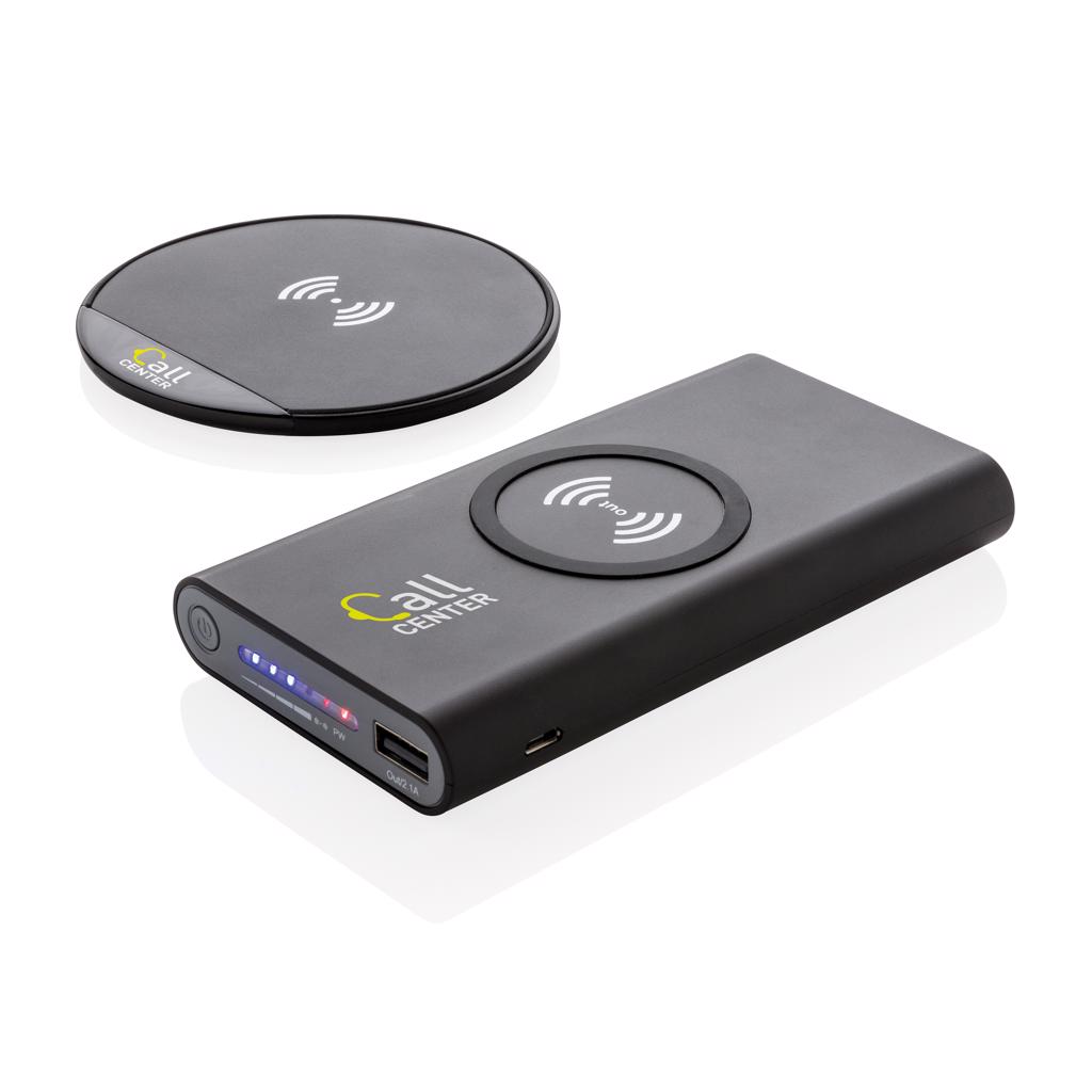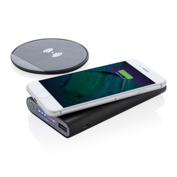 Luxury gift set including a state of the art dual charging 8000 mah powerbank and a 5W wireless charging pad. The powerbank can charge your phone via the wireless charger. When the powerbank is depleted simply put it on the charging pad to re-charge it wirelessly. The wireless charging pad can also be used to recharge your mobile phone separately. The powerbank also comes with 2A USB port and type C to support wired charging. Compatible with all QI enabled devices like Android latest generation, iPhone 8 and up. Powerbank: Input: 5V/2.1. Output: 5V/2A. Wireless input 5V/1A. Wireless output 5V/1A 5W. Charging pad: Input 5V/2A, Output 5V/1A 5W.